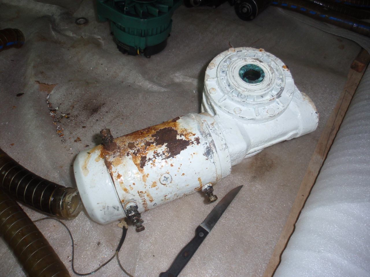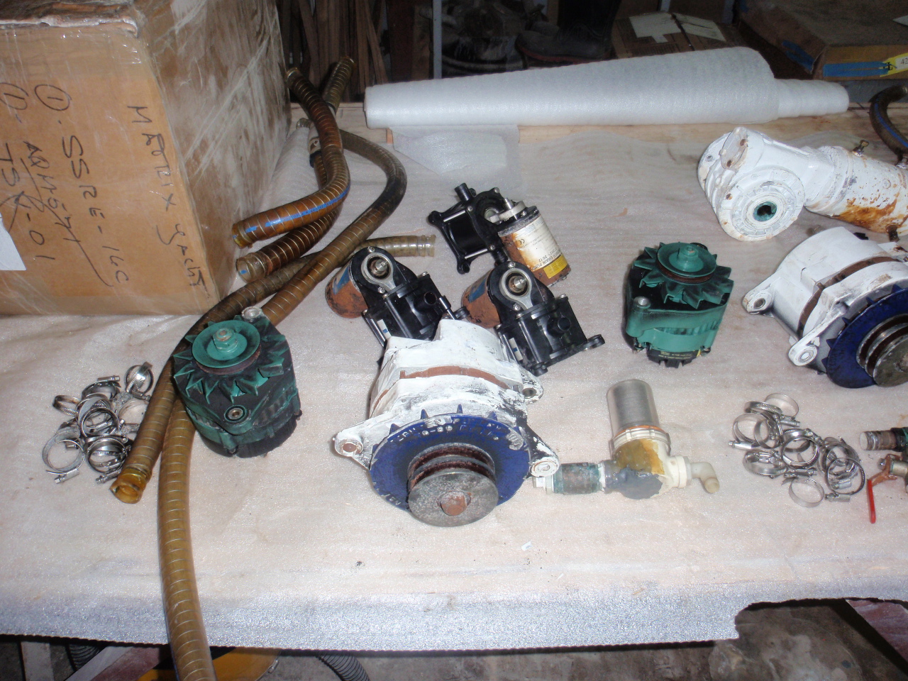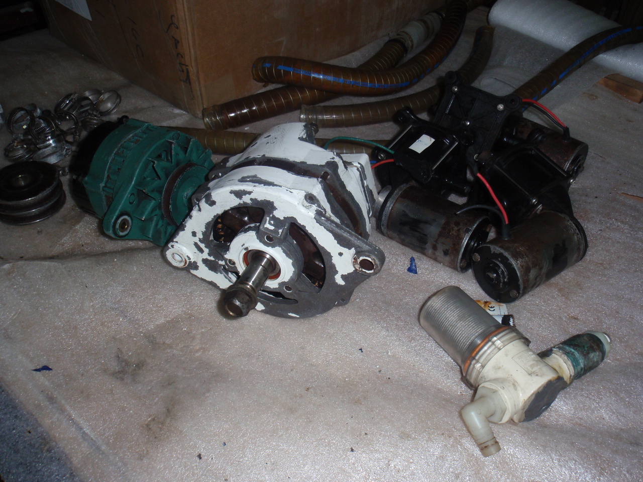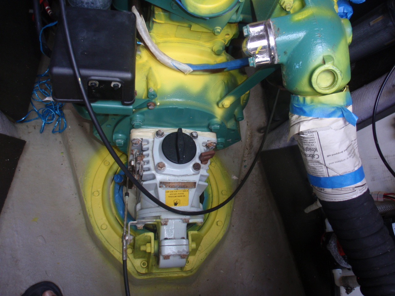 There was a some corrosion on the windlass, so we had that taken apart and gone through and repainted. A couple of other items were starting to show some signs of corrosion, as does a lot of things when exposed to the salt air. Philippe and crew went through both engines compartments and cleaned and repainted the items that were starting to show corrosion, and replacing the 10 year old raw water lines. Just like we replaced the Exhaust hoses in St. Lucia last April. We were going to have the Teak table and flooring replaced, but decided to wait till next year. Somewhere along the years I think the pressure washer was used on the teak and the 2 hatches in the cockpit and the transoms could use replacing at some point.