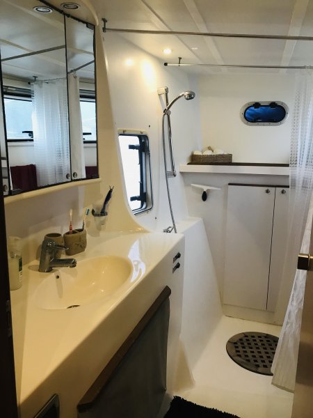 • (2) showers including 1 that offers hot water from a wood burning stove