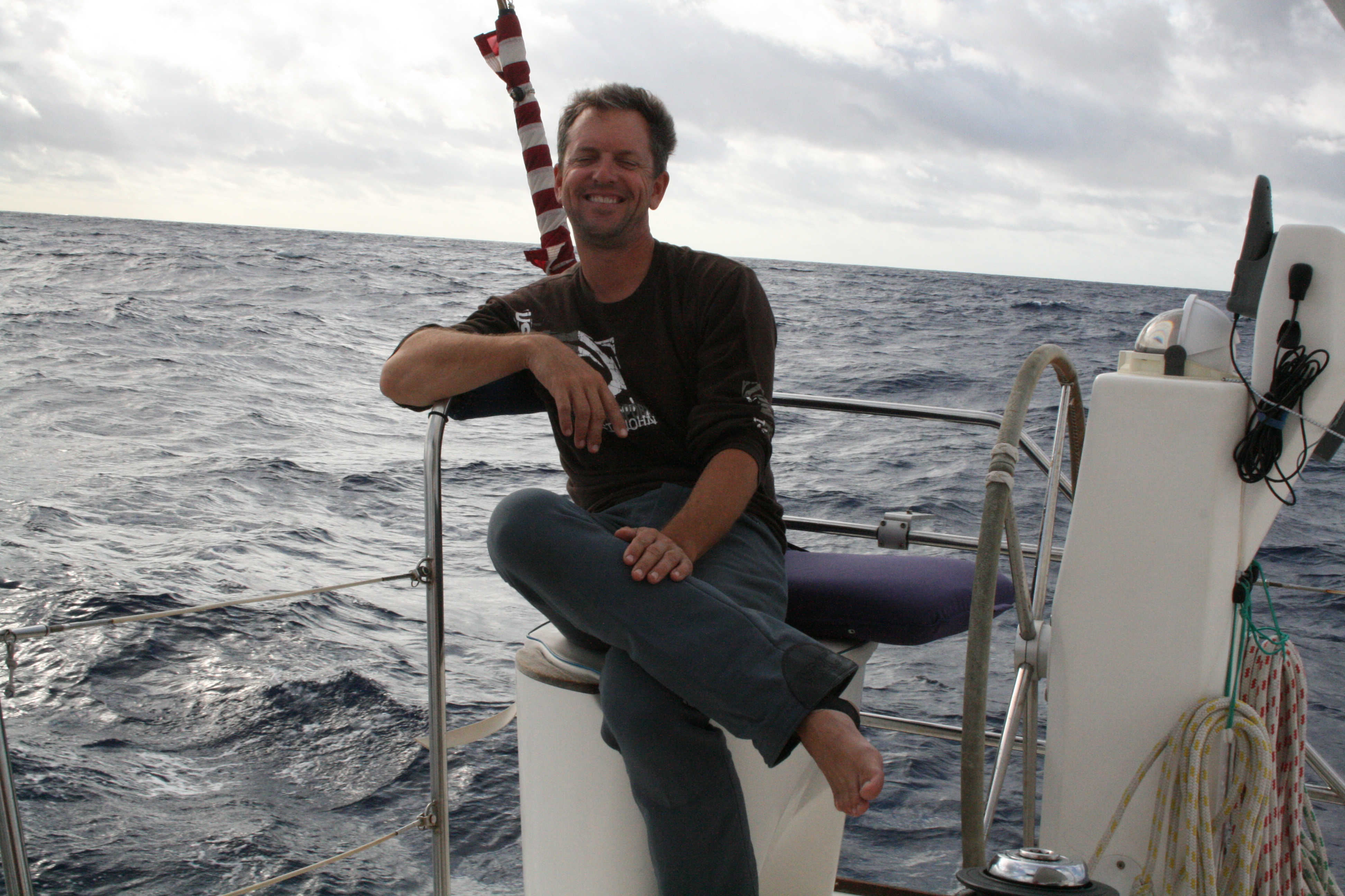 We are anchored in 2.5 meters of beautiful, clear turquoise water. We have lots of happy hour guests the love to hang out with our green light.